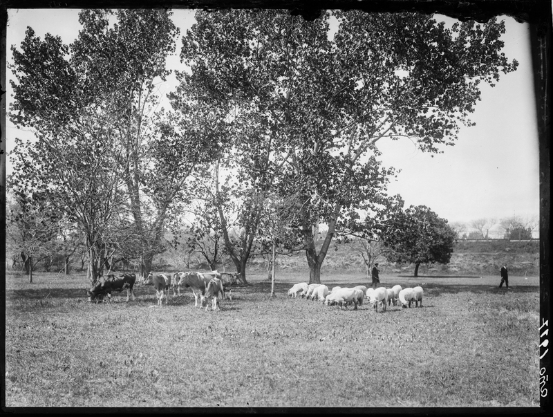 Parque 3 de Febrero. Paisaje del bosque con vacas y ovejas