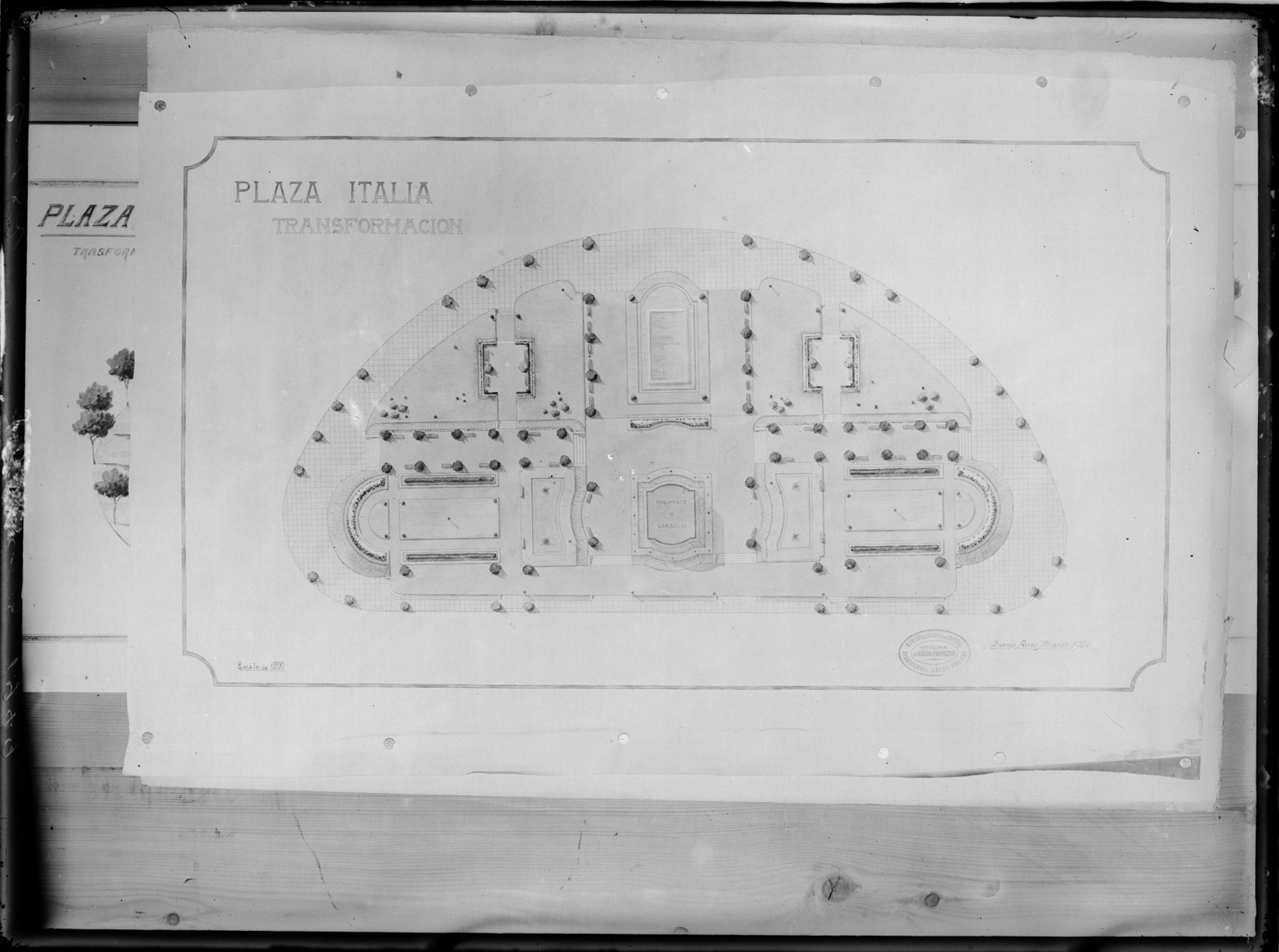 Estudios y Proyectos. Reproducciones de planos. Plano Plaza Italia
