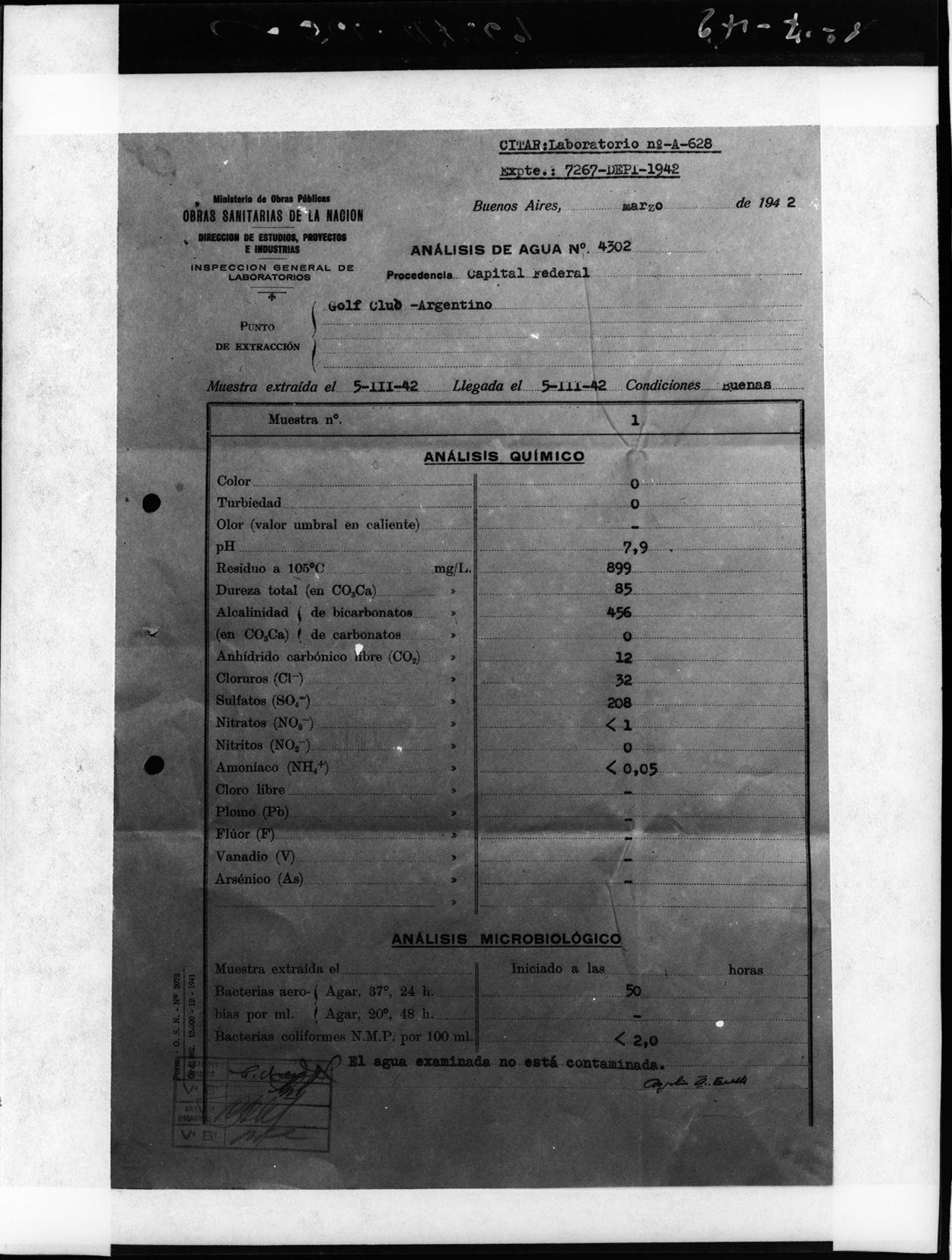 Parque 3 de Febrero. Análisis de agua. Parque 3 de Febrero
