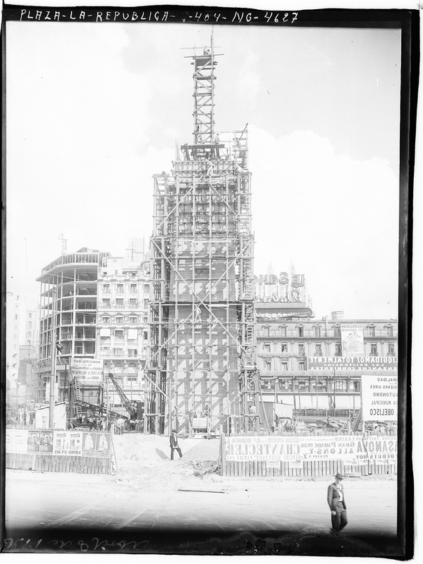 Plaza de las Repúblicas. Obelisco. Primeros trabajos. Obelisco