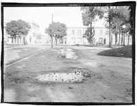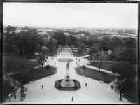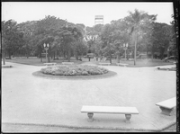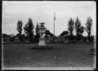Plaza Pueyrredón. Flores. Vista parcial y monumento