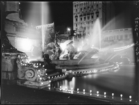 Dirección de Alumbrado. Con motivo de la visita del Presidente del Brasil Dr. Vargas. Fotografías de la iluminación. 25 de mayo de 1935. Arcos sobre Monumento de los Dos Congresos