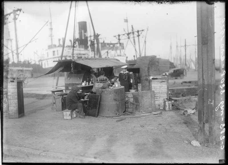 Avenidas y Calles. Varios. Puestos de venta de chorizos en el puerto