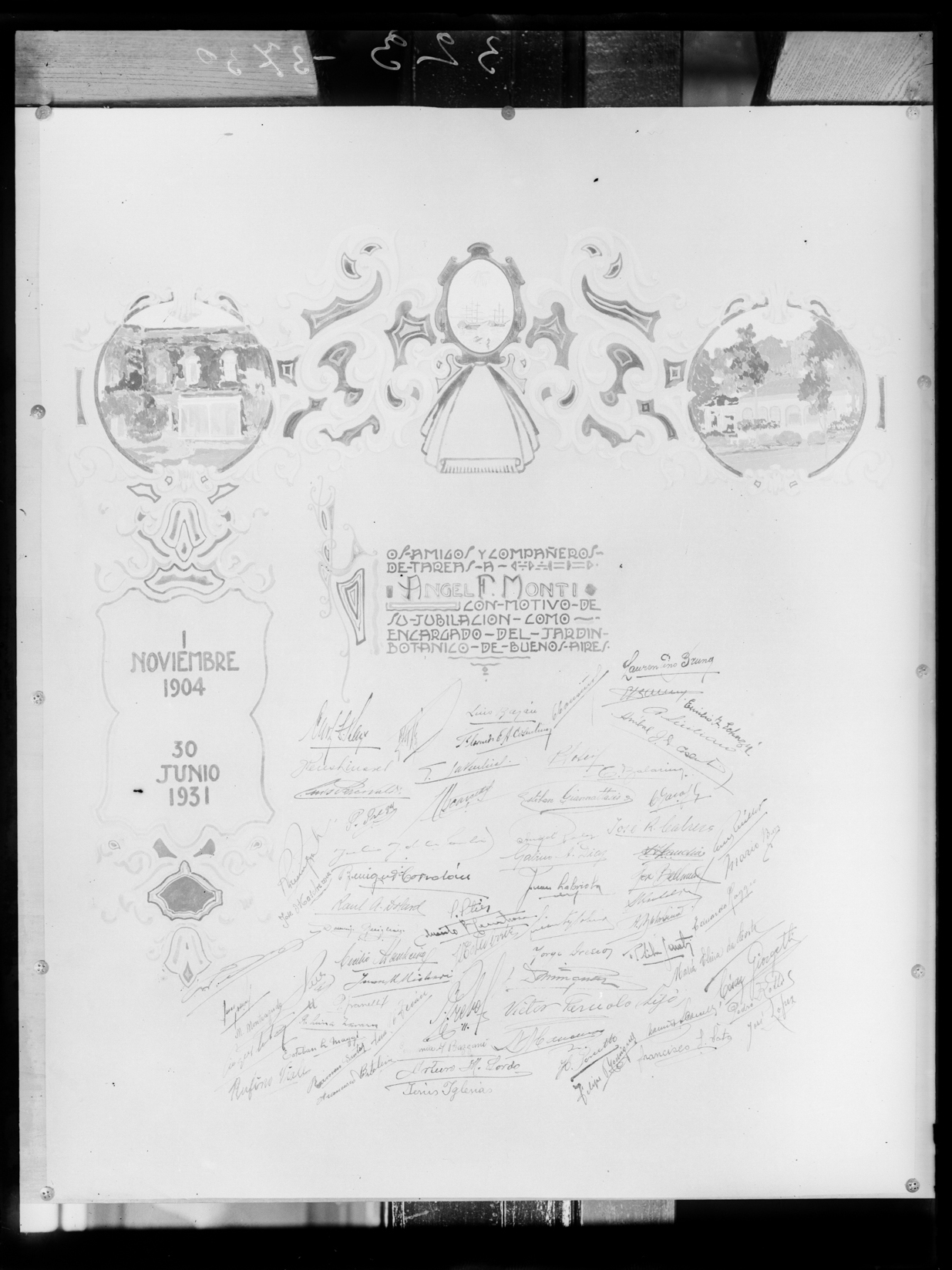 Estudios y Proyectos. Varios. Pergamino al Sr. Monti