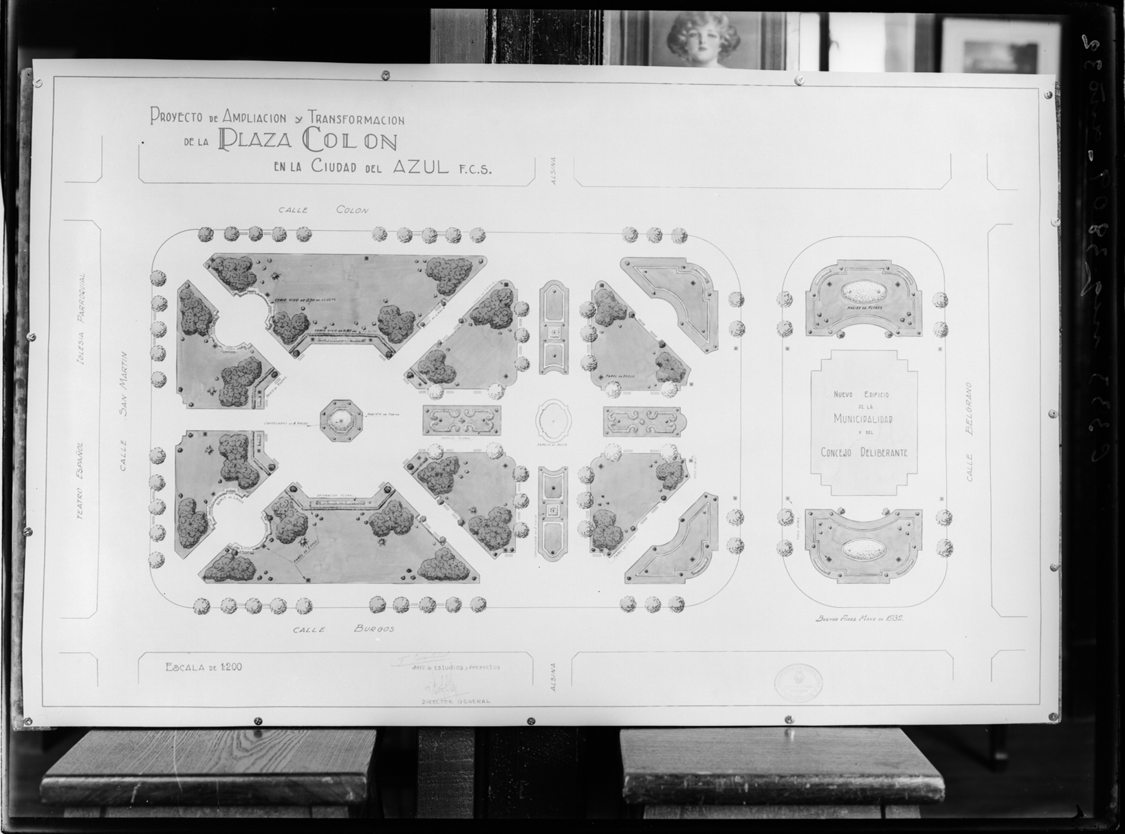 Estudios y Proyectos. Reproducciones de planos. Proyecto de Plaza Colón en el azul[?]