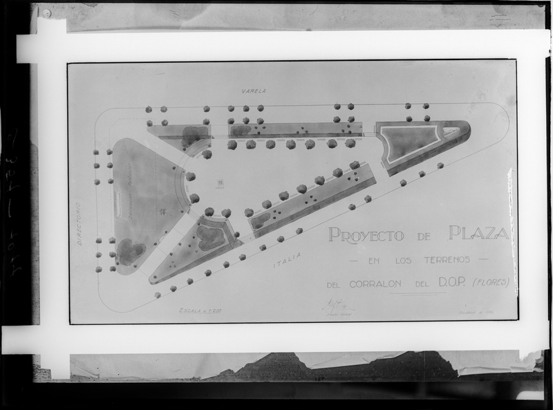Estudios y Proyectos. Reproducciones de planos. Proyecto de plaza en los terrenos del corralón del D.O.P. Flores