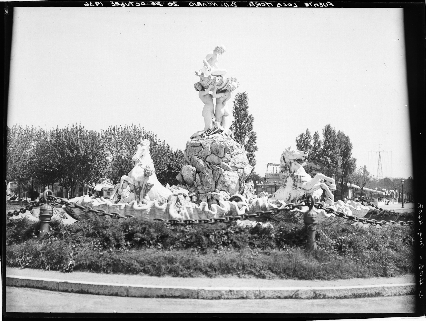 Monumentos y mástiles. Fuente Lola Mora. Esc. Id.