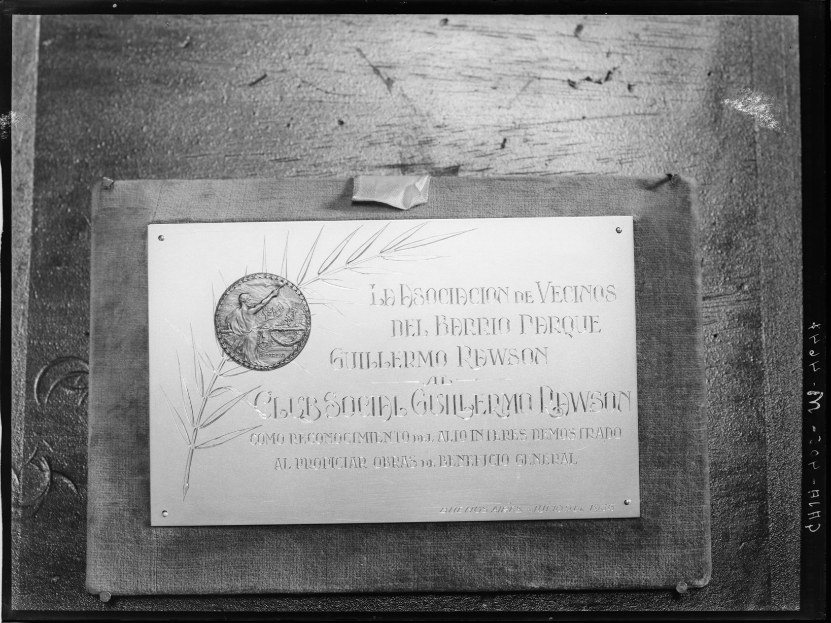 Estudios y Proyectos. Fiestas e inauguraciones. Placa club G. Rawson