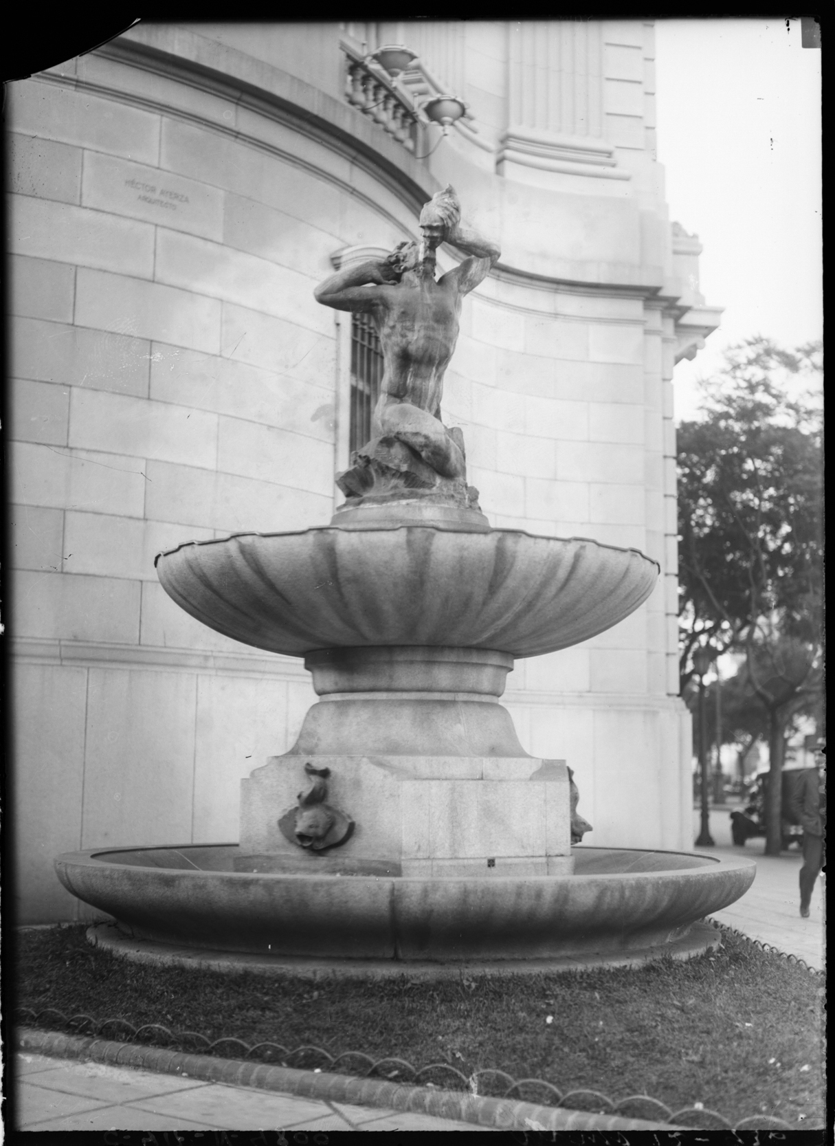 Avenidas y Calles. Monumentos y mástiles. Fuente en la esquina del Concejo Deliberante