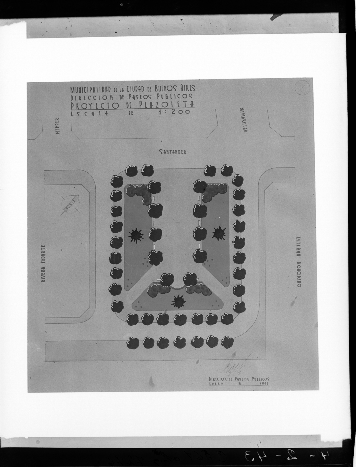Estudios y Proyectos. Reproducciones de planos. Plano proyecto de plazoleta Santander E. Bonorino
