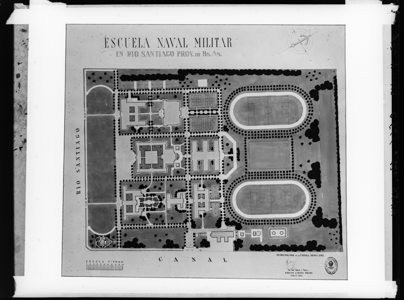 Estudios y Proyectos. Reproducciones de planos. Plano proyecto Escuela naval militar P. de Buenos Aires
