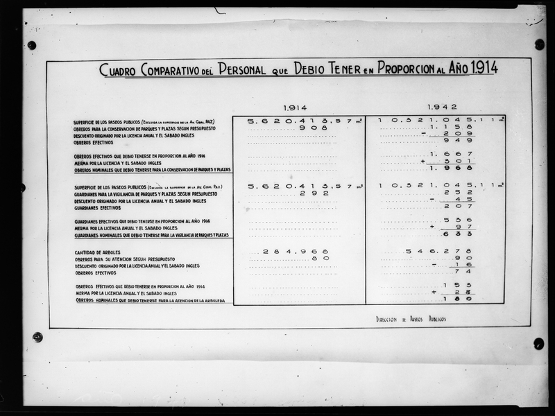 Reproducciones de planos. Gráfico cuadro comparativo del personal. 1914