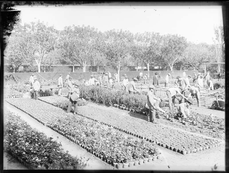 Jardín Botánico. Jardín Botánico. Escuela de Jardineros. Año 1916. En el trabajo
