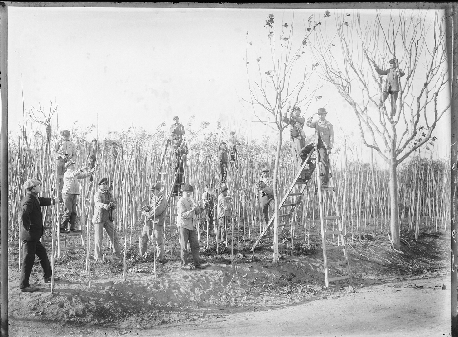 Viveros. Vivero de árboles. Poda de árboles en el Parque Patricios por la senda de jardineros