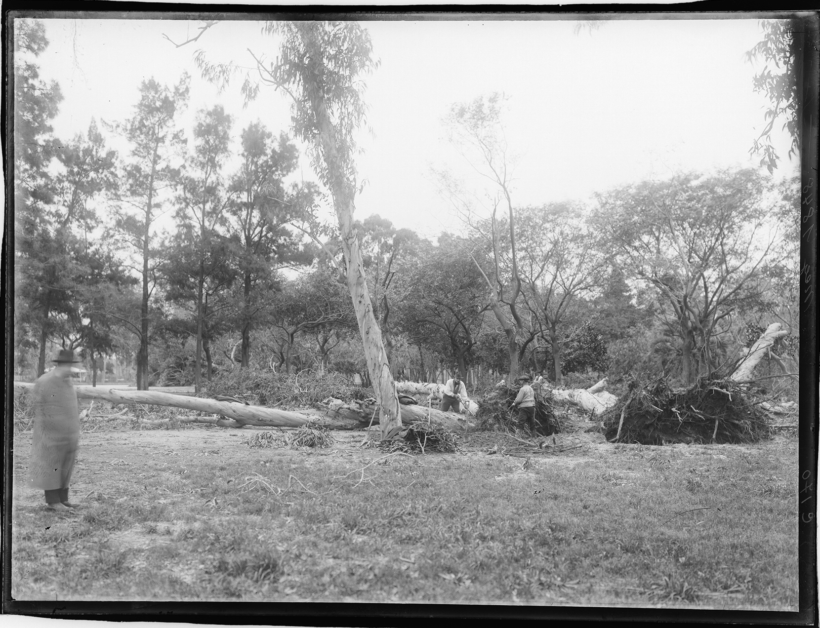 Varios. Parque 3 de Febrero. Eucaliptus tronchados por el temporal de agosto de 1923