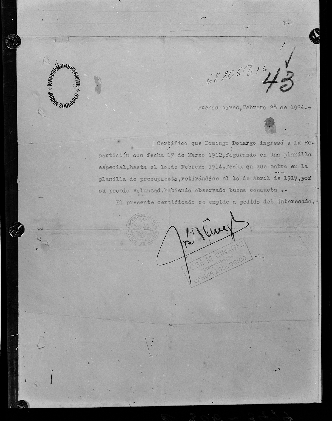 Estudios y Proyectos. Varios. Certificado de Domingo [Damargo?]
