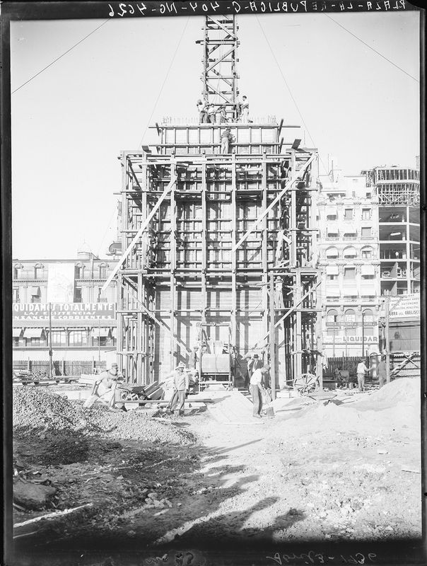 Plaza de las Repúblicas. Obelisco. Primeros trabajos. Obelisco