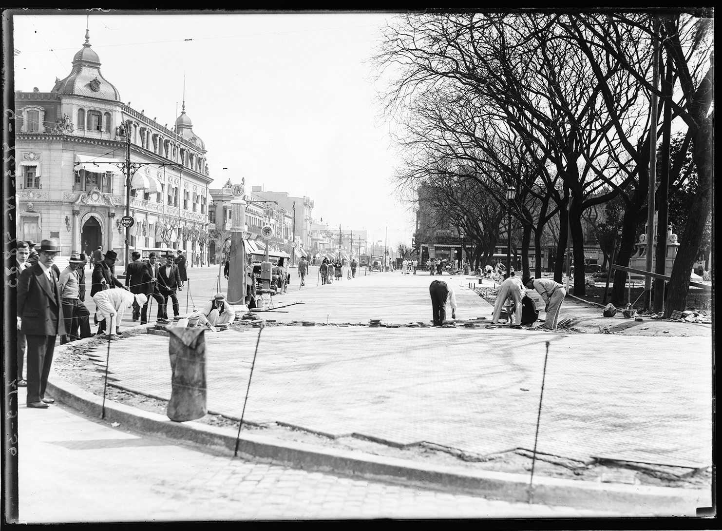 Plaza Pueyrredón. Flores. Primeros trabajos. Vereda