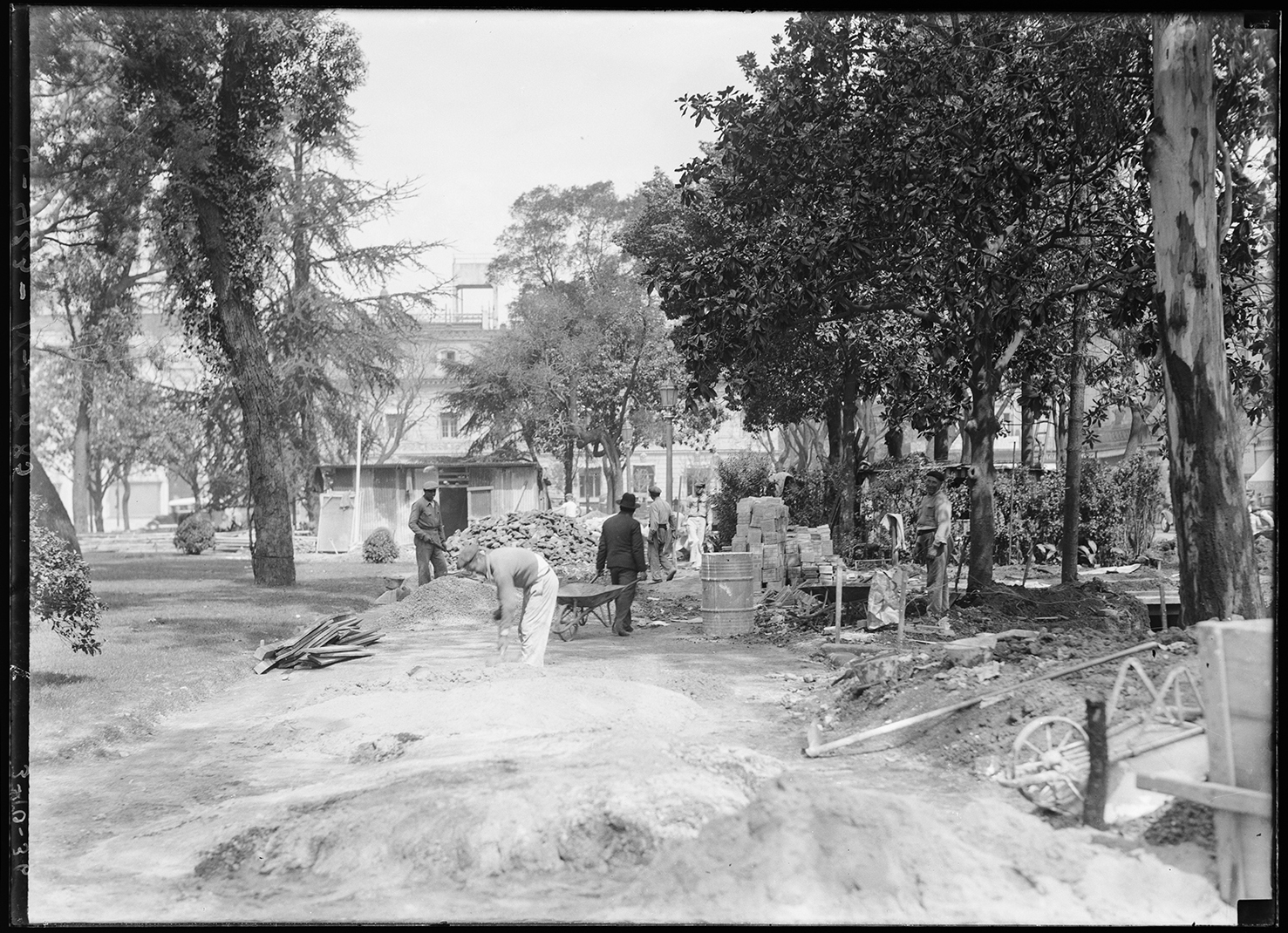 Parques y Plazas. Plaza Pueyrredón. Flores. Primeros trabajos. Caminos