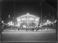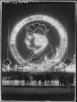 Dirección de Alumbrado. Con motivo de la visita del Presidente del Brasil Dr. Vargas. Fotografías de la iluminación. 25 de mayo de 1935. Arcos sobre Plaza de Mayo