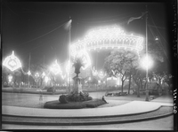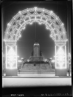 Dirección de Alumbrado. Con motivo de la visita del Presidente del Brasil Dr. Vargas. Fotografías de la iluminación. 25 de mayo de 1935. Arcos sobre Monumento de los Dos Congresos